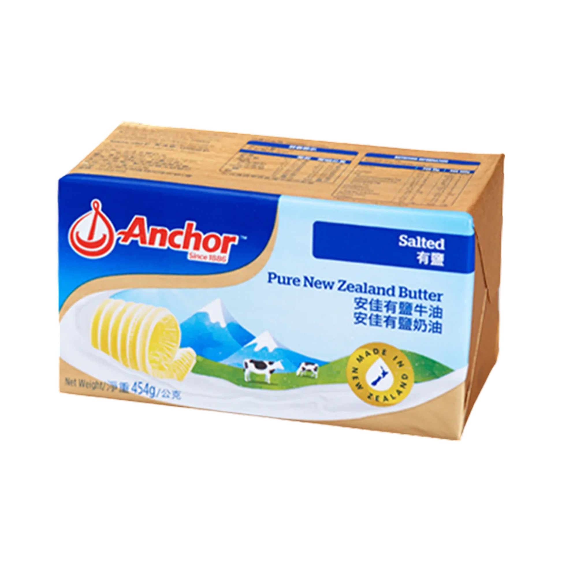 *紐西蘭安佳有鹽奶油,Anchor奶油由100%紐西蘭草飼牛牛奶製造,具有純正紐西蘭風味和濃郁奶香,色澤金黃,並且不含防腐劑及色素。